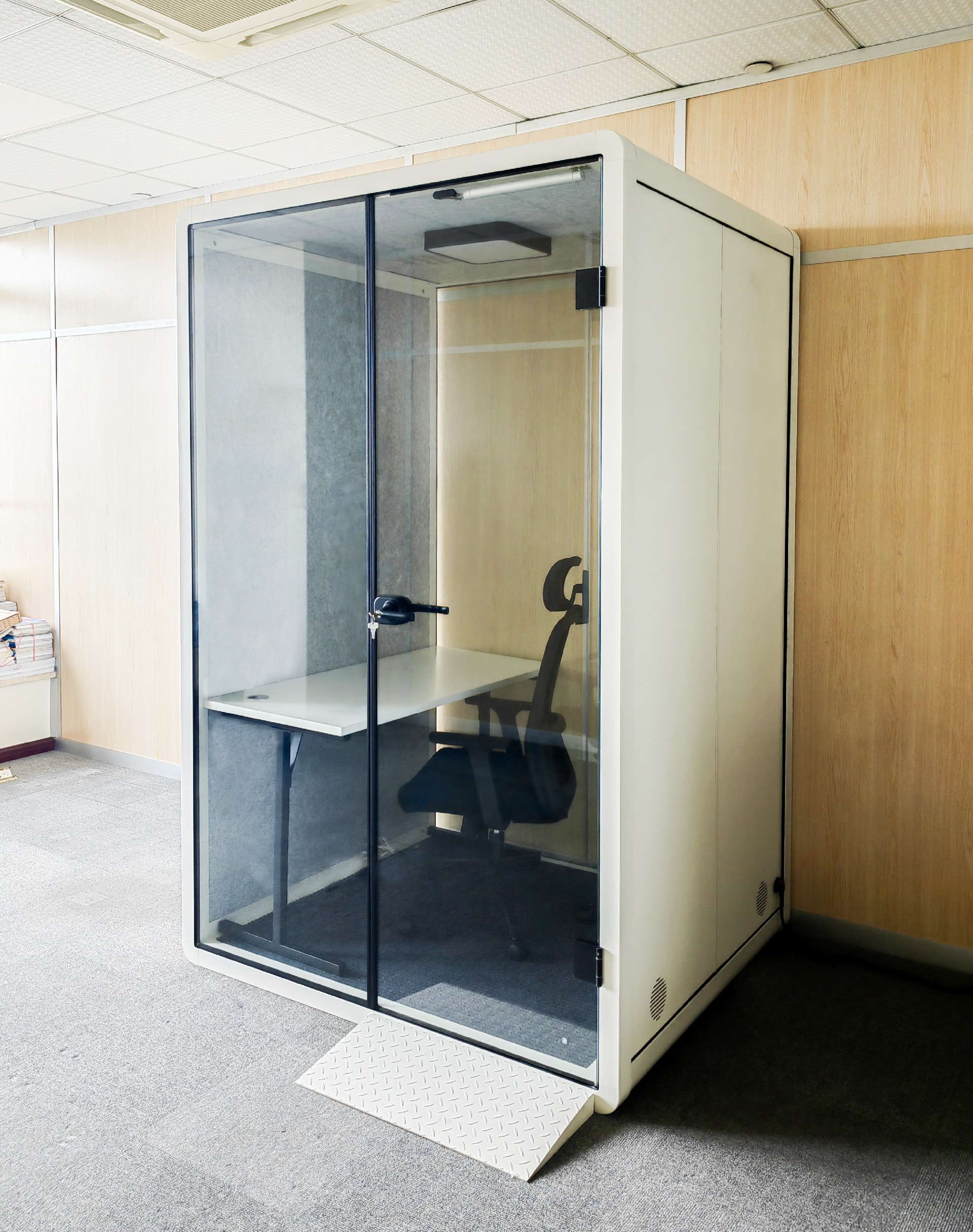 In the evolving landscape of work environments, Prodec Acoustic Booths offer an innovative and flexible solution for shared office spaces. These images showcase the tailored proposals we've created for our client, aimed at fostering a private and efficient work atmosphere. Our soundproof booths are specifically designed for freelancers and remote workers, meeting their need for quiet, personal office spaces. Each booth not only provides superior acoustic isolation but also enhances the work environment with vibrant colors and a modern design. These proposals demonstrate how we provide our client's office sites with customized, multi-functional, and easy-to-deploy soundproof booths, representing the future trend of co-working and flexible work arrangements.