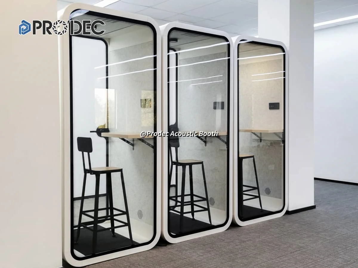 Modern soundproof pods are designed for flexibility and performance. Whether placed in a corner or centralized in a busy workspace, these pods provide: