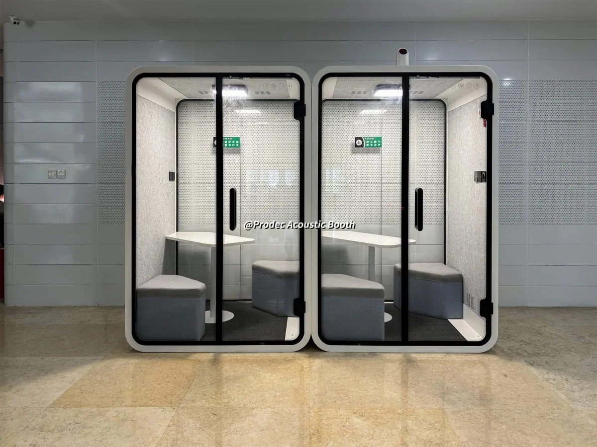As a leading China solo working booth factory, Prodec offers more than standard options — we specialize in customized office soundproof booths that can be tailored from single-person focus pods to 6-person huddle spaces.