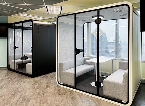Company meeting rooms are not enough to hold multiple meetings at the same time. Most of the time, a 2-6 persons group meeting only requires a small space for internal meetings and negotiating with customers. Our Acoustic Booth can perfectly solves this demand and fully improve the efficiency of the meetings. contact us