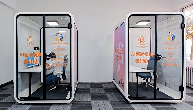Company recruitment is gradually changing to online. In order to solve the problem of weak signal, noisy environment and interference,the interview booth can provide a quiet and independent private space for online interview. contact us