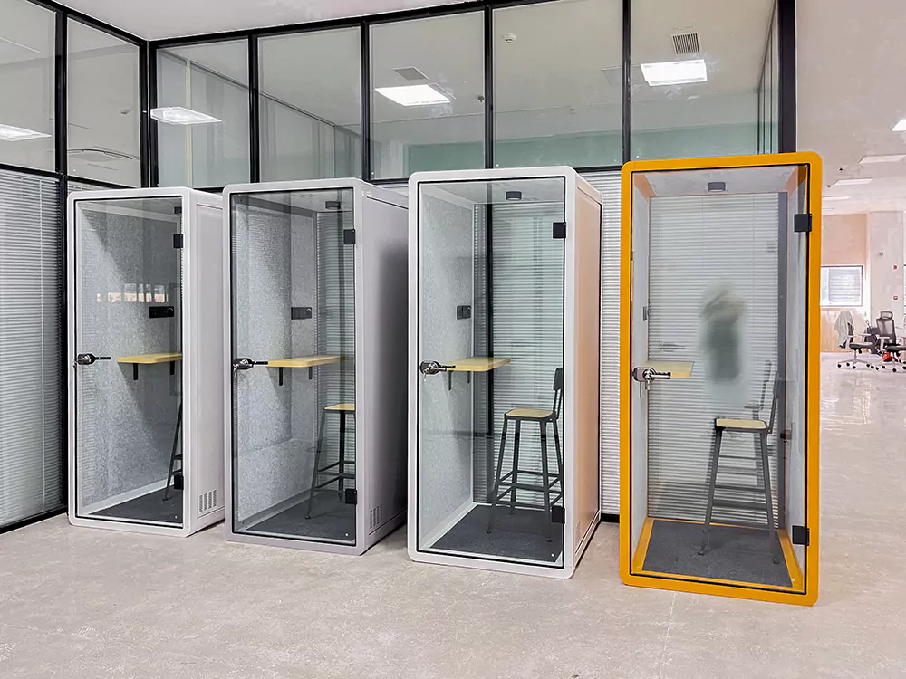 Our booth adopts train type sound insulation tempered glass, which meets the requirements of sound insulation and meets the safety and stability of installation and use.